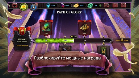 СОЛО- И ДУЭЛЬ-АРЕНА Сражайтесь с другими игроками за награды недели на Дуэль-арене. Выставляйте своих Чемпионов против компьютерных противников на Соло-арене – чем больше побед одержите, тем лучше награды.