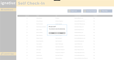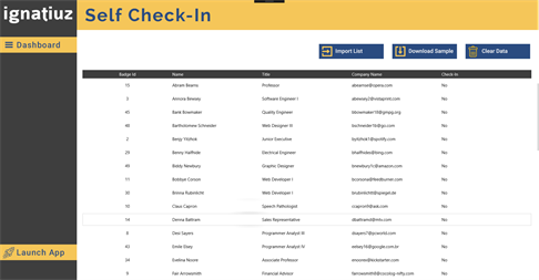 Self Check-In is an interactive multi-touch app that lets you automate the check-in process for the guests attending your conferences and exhibitions. With the ability to import the guest list directly, the app allows your guests to search their names on an interactive interface and print their badges directly, while letting you keep a track of who has checked-in and who has not.
