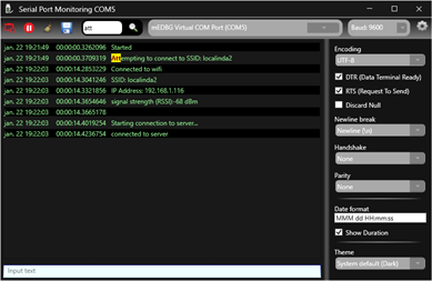 Read logs from a device connected to your USB. It is mostly for assist a developer when coding with Arduino or similar. I prefer to use VS-Code for coding C with Arduino Extension, and this application I use for listening to the logs. Then I can easily search, see the timestamp, etc.
