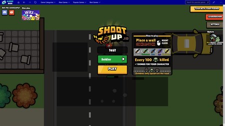 Shootup.io is a zombie shooter game. You find yourself stranded in a mysterious town. Bad luck, it's infected with zombies. There's only one solution for you... SHOOT'EM ALL! Build a base or squash the zombies with your vehicle. Team up with your friends or fight the other survivors Unlock bonus, ammunition, turrets, landmines... What's your high score gonna be? You can team up with your friends by sharing the link on the button "Team with your friends".