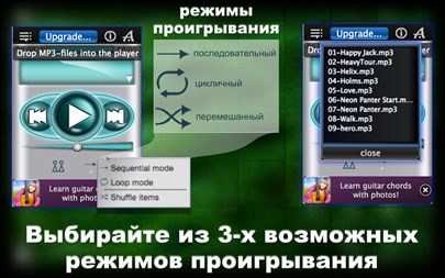 Выделив нужные файлы и захватив их мышкой вы можете перенести их в область плейера. А затем выбрать из 3-х возможных режимов воспроизведения: - Последовательный - все файлы проигрываются в выбранной вами последовательности. - Цикличный - файлы проигрываются по кругу друг за другом. - Перемешанный - файлы смешиваются в случайном порядке. Это действительно просто! Сгружайте его сейчас и проигрывайте свои аудио файлы.