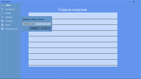 Из-за большого ассортимента, представленного в магазинах, теряется сосредоточенность внимания и в итоге забываешь, что именно хотел купить. Приложение "Simple shopping" было разработано для удобства составления списков предстоящих покупок и служит своеобразной напоминалкой.