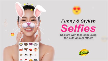Add smiley Doggy Face rainbow filter - cute rabbit - anime eyes - tears - text - stickers and cartoon, doggy and much more.. to your selfie in just a few seconds! Easy to add text which is very unique functionality.