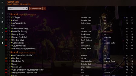 Use SongRepertoire to manage your set lists - unlimited set lists - group your songs to blocks including calculation of length - favorites playlist