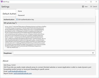 SSH Proxy is applications help to create proxy or local port forwarding to access blocked websites and servers over an encrypted SSH connection easily. It is able to create socks5 proxy (dynamic port forwarding) or local port forwarding to specific servers. SSH Proxy is useful for transporting network data of services that use an unencrypted protocol, such as VNC or FTP , accessing geo-restricted content, or bypassing intermediate firewalls. Basically, you can forward any TCP port and tunnel the traffic over a secure SSH connection.