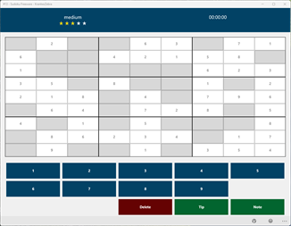 Sudoku, the classic. Choose from five different levels of difficulty, the right one for you and solve the puzzle as fast as you can. If you ever get stuck, a tip will help you along.