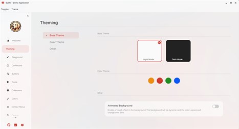 - Browse into the different Avalonia Controls themed by SukiUI - Discover new controls made by the library - Test the different color theming options, and switch from light/dark theme - Use the playground to test the SukiUI Controls possibilities.