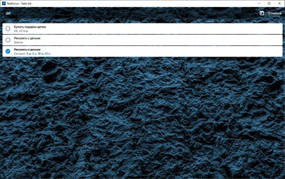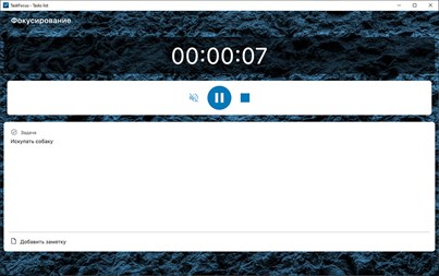 Фокусирование на задаче: - Приложение позволяет сфокусироваться на выполнении конкретной задачи из Вашего списка с возможностью выбора мелодии, позволяющей лучше сконцентрироваться на задаче. - Возможность выбора фонового звука при фокусировании.