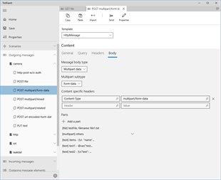 Various test scenarios can be created and saved in solution files. Scenarios are defined using a Finite State Machine (FSM) concept with states, events, and actions. Messages can be specified both in binary and text format. Text based messages can be defined either using a Raw Message editor, a HTTP Message editor, or an ABNF Message editor. The latter defines the message content using a template concept that defines the structure using the ABNF syntax notation.