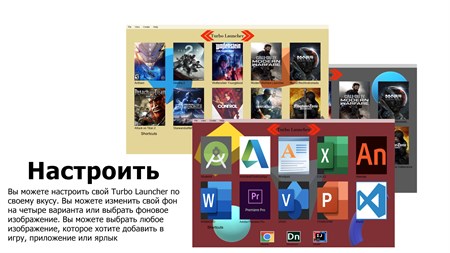 Запускайте свои приложения и игры со скоростью одного клика. Вы можете настроить Turbo Launcher по своему вкусу, изменив фон и каждое приложение или картинку игры. Вы можете использовать его для повышения производительности и экономии времени, автоматизируя процесс открытия всех ваших ежедневных приложений и веб-сайтов. Вы также можете использовать его как средство запуска игр, вы можете автоматизировать процесс запуска потокового сервиса и ваших игр одновременно.