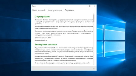 Приложение UNGIN (Expert 2.0) представляет собой оболочку экспертной системы, знания в которой представляются в виде совокупности правил логического вывода. Используя UNGIN (Expert 2.0) вы можете создать свою экспертную систему для решения задач своей предметной области. Программа является исследовательским прототипом. Предоставляется бесплатно на условии «как есть» для некоммерческого использования.