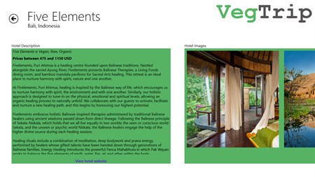Use the app to find nearby vegetarian hotels or search for accommodations for your next vacation abroad. Read about the hotels, check out images and discover nearby places of interest as well as surrounding veggie restaurants. Whether you are looking for a shopping weekend in a major city or relaxation on the beach VegTrip has you covered.