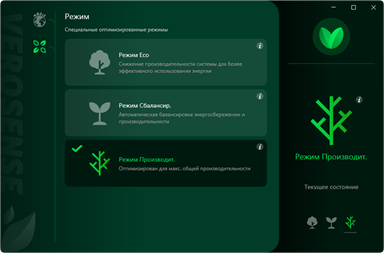 VeroSense - это встроенное приложение Acer, помогающее пользователям, заботящимся об экологии. Приложение предлагает пользователям на выбор три режима производительности: Производительности, Сбалансированный и ЭКО. Приложение VeroSense заботится не только об экологии, но и о пользователе, и предлагает удобный интерфейс и полезную информацию о том, как помочь сохранить природу планеты Земля.