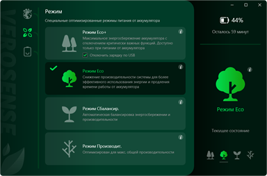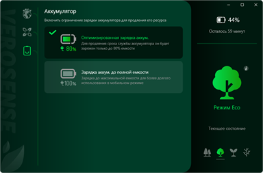 Приложение предлагает пользователям на выбор четыре режима производительности: Производительности, Сбалансированный, Eco и Eco+. Приложение VeroSense заботится не только об экологии, но и о пользователе, и предлагает удобный интерфейс и полезную информацию о том, как помочь сохранить природу планеты Земля.
