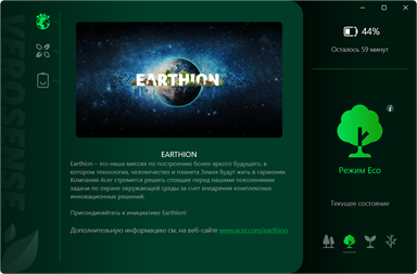 VeroSense - это встроенное приложение Acer, помогающее пользователям, заботящимся об экологии, сберегать энергию для продления времени работы от аккумулятора.