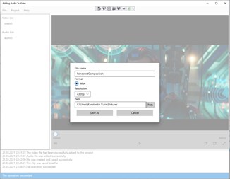 Combine video and audio into one file. Select a video file and an audio file and combine them in a few clicks. Save the resulting composition in the desired quality up to 8K. You can preview the resulting result in the built-in player before saving. The application is simple and does not take a lot of time to use.