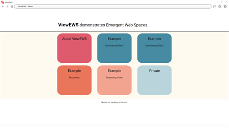 ViewEWS demonstrates Emergent Web Spaces. Emergent Web Spaces are resolved from objects of random data that have emergent properties. The objects cannot otherwise be combined or operated on in any way to extract information. Each resolver is bound to a unique zone that is created from a source of quantum randomness. One zone can host more websites than the entire Internet - choose any domain names you wish.