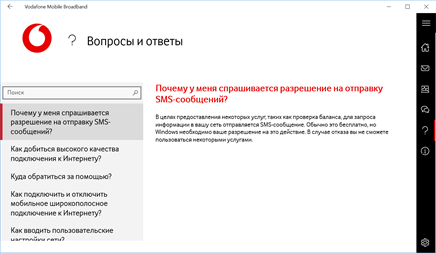 Это приложение позволит вам управлять своим мобильным миром. В своей учетной записи на сайте вы можете получать сообщения, специальные предложения, а также помощь и техническую поддержку. Вы можете использовать это приложение с SIM-картами Vodafone или операторов-партнеров, а также с устройствами мобильной широкополосной связи, такими как USB-модем. Чтобы узнать о совместимости с устройствами мобильной широкополосной связи, выберите пункт ""Подробности"" или ознакомьтесь с часто задаваемыми вопросами.