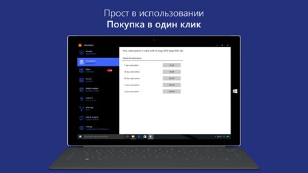Подписки: Приложение VPN Shield работает по модели подписок на сервис с широким перечнем доступных опций на разный период времени: ● Бесплатная однодневная подписка VPN без ограничений по трафику, скорости и без рекламы. ● 1 Месяц сервиса VPN без ограничений по трафику, скорости и без рекламы. ● 1 Год сервиса VPN без ограничений по трафику, скорости и без рекламы. ● Вечный сервис VPN без ограничений по трафику, скорости и без рекламы. Вы можете использовать купленную подписку на одном устройстве между любыми другими вашими устройствами просто введя логин и пароль в приложении. Одновременно можно использовать приложение на 5 устройствах.