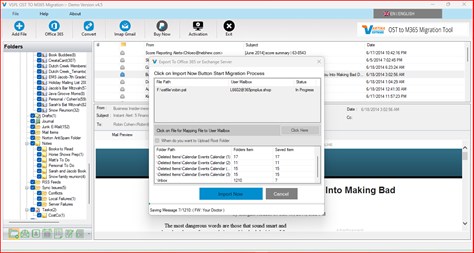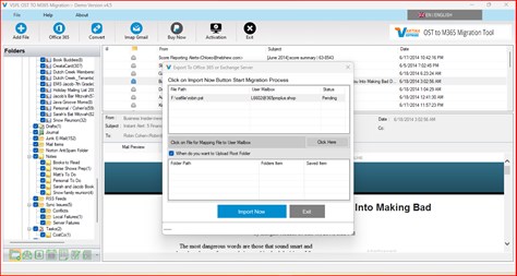 Exchange Outlook OST File is an Exchange Outlook OST file format used for Store data such as emails, address books, calendars, notes, and tasks etc on a local computer as Outlook (*.OST) File. VSPL OST to M365 Migration tool to Migrate You Exchange Outlook (*OST) file into Microsoft 365, Office 365, and Live Exchange Server User Mailbox account. User Can Easy to Migrate your OST File Email, Contact, Appointment and Task etc. This Application also Supported Outlook Version - 2021, 2019, 2016, 2013, 2010, 2007, 2003 Unicode and ANSI OST or PST File. VSPL OST to M365 Migration Tool helps you migrate into Exchange and Microsoft 365 Mailboxes folder such as - inboxes, contacts, and calendar contents from OST or PST files. This free tool helps you easily import OST or PST files to new Microsoft 365 mailboxes 30 Items each selected folders. VSPL OST to M365 Migration Tool help to users Importing Outlook(*.PST) File & migrate OST File Messages into Gmail, Yahoo! Mail, Others Any IMAP Supported Email Account, Its supported Office 365, Microsoft 365 and Live Exchange Server. Limitation: Demo version enables you to show preview of email and saved 30 messages each selected folder License Key Delivery: 15 Min to 24 hours may be taking license key delivery information send to your email address. If you are purchase from Microsoft store then send purchase receipt to support email address. support team send you license details to your purchase email address.