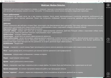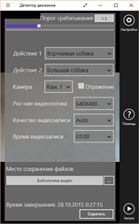Детектор движения - может определить движение, используя одну из камер устройства. Когда, детектор движения, фиксирует движение, он может одновременно совершить до трех действий заданных пользователем. Например, при фиксации движения, детектор движения может сделать фото. Также, когда движение зафиксировано, детектор движения может начать записывать видео. Детектор движения, определив движение в кадре, может напугать кошку громким лаем, или ворчанием.