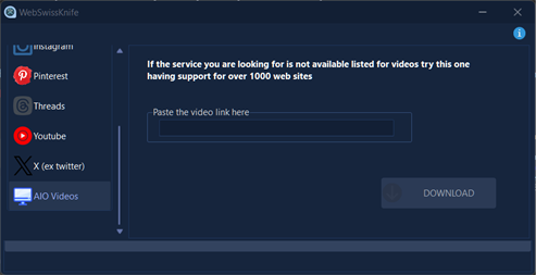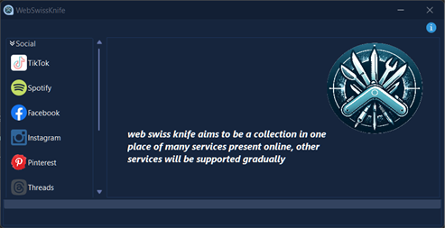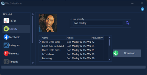 Introducing WebSwissKnife, your all-in-one solution for effortlessly downloading music and videos from your favorite social media platforms. WebSwissKnife is a versatile software tool designed to simplify the process of downloading multimedia content from various social media platforms. Whether you're scrolling through your favorite music videos on TikTok or discovering captivating content on Instagram or others platform, WebSwissKnife provides a seamless solution for capturing and saving your favorite media. With WebSwissKnife, you can easily download music tracks, video clips, and other multimedia content from platforms like TikTok, Instagram, Facebook, Twitter, and more. Simply search or copy the URL of the desired content, paste it into WebSwissKnife, or download lyrics song and traslate and let the software handle the rest.