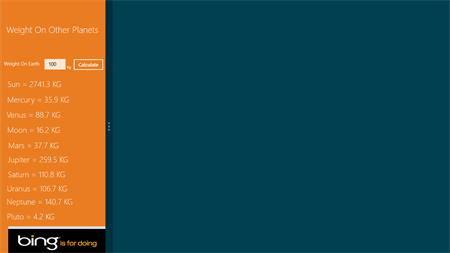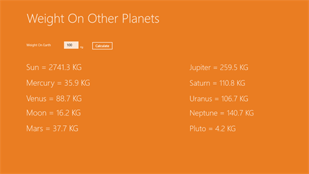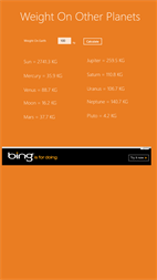 Weight On Other Planets is a fun app (and free too) which allows you to calculate your weight on other planets. It allows you to calculate your weight on Sun and Moon too (Sun is a star and Moon is a satellite). I am a 15 years old geek. So for my study purposes, I added few ads in this app (One banner only, no problem in user experience).