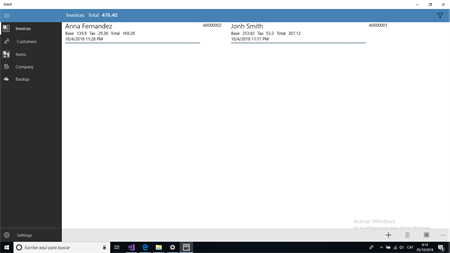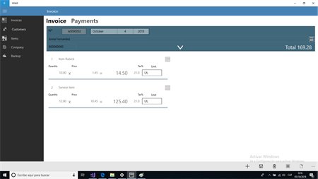 Application to issue invoices in a simple and fast way. An invoice can be made immediately without prior requirement of customer introduction, or of items.