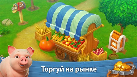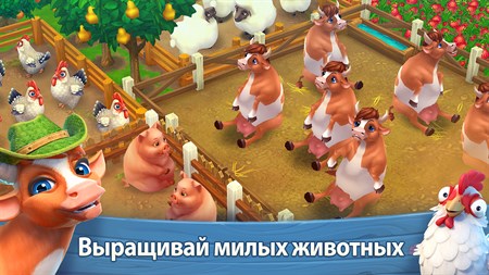 • выращивать полезные растения • ухаживать за милыми животными • строить оригинальные здания • готовить по самым интересным рецептам из натуральных продуктов, выращенных на вашей ферме! • развивать производство: добывать дерево, камень, золото и серебро.