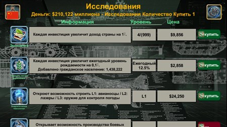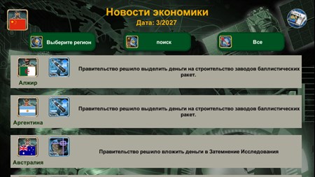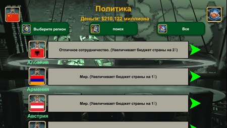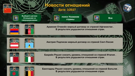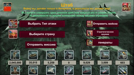 В качестве нового главы государства, Ваша цель - стать величайшим лидером. Используя всё, от дипломатии до войны, Вы должны постараться построить Империю, стать лидером среди других стран как в экономике, так и в военной сфере. Вы готовы управлять, Величайший Командующий? Игра подразумевает однопользовательскую игру против очень умного ИИ, где представлены актуальные события и информация о странах. Наша команда собирает и обновляет ежедневно информацию о странах: экономику, отношения, состояние армии и т. д.
