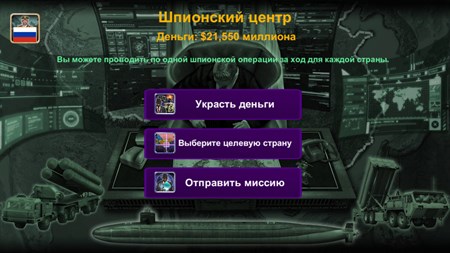 В игре присутствуют 180 стран, Вы выбираете страну, которой хотите управлять и начинаете игру. Игра содержит: Поставщиков оружия со всего мира, Шпионский центр, Военная Комната, Дипломаты, ООН, экономическая система, Технологии, Мировые новости (Экономика, Отношения, Шпионаж и Война) и очень продвинутый Искусственный Интеллект. Оружие в игре: Наёмники, Боевые Машины Пехоты (БМП), Танки, Артиллерия, Противовоздушные ракеты, Вертолёты, истребители, Корабли, Подводные лодки, Боевые роботы, Беспилотные Летательные Аппараты (БПЛА), Авианосцы и Баллистические ракеты.