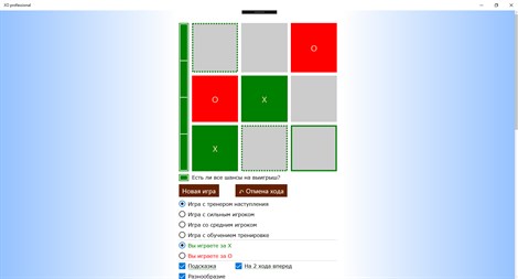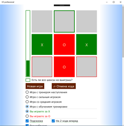 Приложение также оценивает ситуацию на предмет возможности 100% выигрыша и Ваш последний ход с выдачей результатов на шкале.