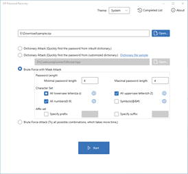 This is a tool to find zip file password. Usage restrictions for free users: the number of attacks is limited to 100,000.