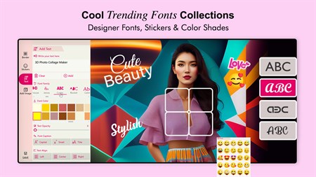 With 3D Photo Collage Maker you can combine ordinary photos into fabulous & amazing photo collages. Decorate your images by fantastic 3D effect and frames, add text with colorful fonts & stickers.