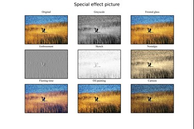 9pics app can generate a 9-in-1 picture including 8 different special effect pictures (Grayscale, Frosted glass, Embossment, Sketch, Nostalgia, Fleeting time, Oil painting, Cartoon) from an original picture. (1) Click the "OPEN ORIGINAL PICTURE FILE" button to select a original picture. (2) Click the "SELECT FOLDER TO SAVE SPECIAL EFFECT PICTURE" button to select a folder where the special effect picture is saved and start the conversion. When the conversion is completed, a "Convert to 9-in-1 special effect picture successfully!" dialog box will pop up, displaying "The filename of 9-in-1 picture will be automatically detected to avoid overwriting, and parentheses and a serial number will be added after the original filename, starting from (1), followed by (2), (3), (4), ...".