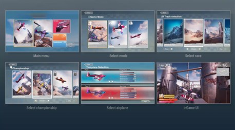 - Complete race - Airplane controller (keyboard and pad) - Booster cooldown - Dogfight system with 5 weapons (machine gun, missiles, mines, shield and repair) - Alternative routes - Solo and Versus modes - 3 gameplay modes (Championship, Arcade and Time Trial) - 3 difficulty levels - Local Leaderboard - Unlock system: items or tracks unlock as the player progresses - Countdown system - Save system - Settings menu: Inputs, graphics quality, sound volume (music,ambiance, sound fx) and languages - Localisation system