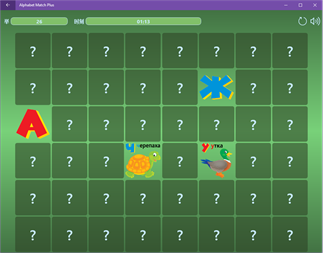 Main features: - Multiple levels and options to choose from - Supports 3 difficulty levels (easy, medium, hard) - 3 pair matching modes (letters, letter-to-picture/word, and simply cute images) - Multiple languages to choose from (English, Spanish, Russian - with more to come) - Text-To-Speech technologies provides an easy and effective way to learn how the foreign words sound. - Keeps the top local scores for all levels and modes