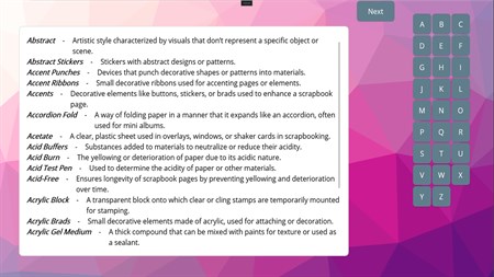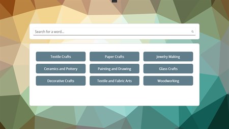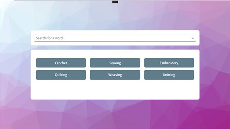 10 Arts and Crafts Dictionaries are divided into Categories that cover over 33000 words. - Search the database for words and information. - Counter Tools (for Knitting or Crochet, or other crafts) - Scaling Tools