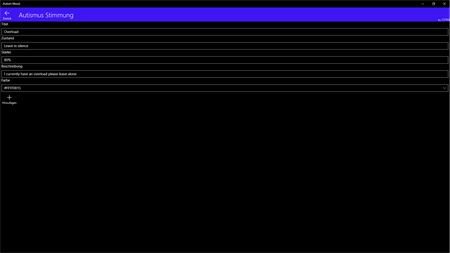 In this app, autists or other individuals who can not speak in a situation or want to communicate with their people with this app. Users can create profiles describing their current state descriptions and instructions on how to handle them in this situation. This issue is done via a voice bot that directs this message to the people the user wants to contact. This function is also divided below in the so-called voice box, in which one can also quickly enter another text to be spoken.