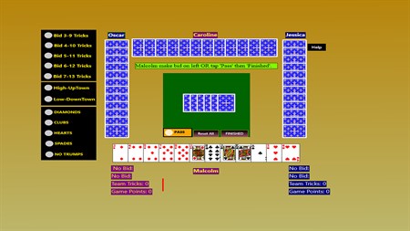 Best Bid Whist is the best in the sense that the look, animations and play of the robots are as good as possible. All the difficult scoring is done for you and best of all you can download for a 7 day free trial before you are asked for a very modest amount of money for free play. Nothing could be more fair.