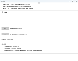 只有一个耳机?在手机和电脑之间来回拔来拔去?好麻烦!! 不能/不想在电脑安装音乐播放器?又想听手机的会员音乐? 有了BleAudio,只需简单点击,把手机“声音”接入电脑~尽享便利。