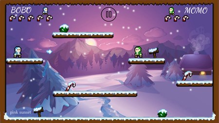 Get ready for a winter wonderland adventure with 'BOBO & MOMO: 2 Player Snowball Thrower'! This delightful, pixelated game is the perfect way to spice up your holiday season. Join the lovable characters, Bobo and Momo, in a festive snowball fight that’s sure to bring joy and laughter to you and a friend.