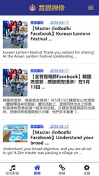 收听下载菩提禅修的音频。在线阅读禅修与健康杂志。接收,查看和保存菩提禅修各禅堂的新闻。你可以决定从哪个禅堂接收新闻,接收哪种语言的新闻。 目前支持英文,简体中文,繁体中文和韩语。