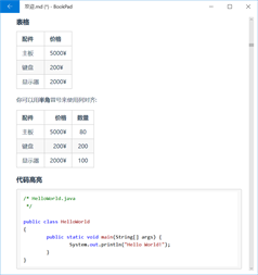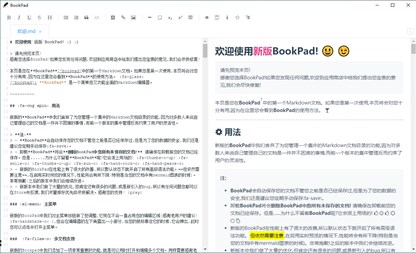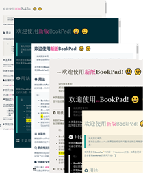 BookPad拥有下面的功能: 1. Markdown纯文本编辑 2. 除基本语法之外的Markdown扩展功能: a. 脚注 b. 页脚 c. 表格 d. 数学公式 e. 时序图 f. 流程图 g. 表情符号和图标 h. 嵌入图片 i. 自动目录 j. 更多…… 3. HTML预览 4. 实时预览 5. 格式化的编辑器 6. 支持行号显示 7. N多自带样式 8. 全屏(专注)模式 9. 自动保存 10. 编辑和预览同步滚动(双向真同步) 11. 拖拽图片文件或Markdown文件到编辑器,自动生成链接。 12. 自定义图片大小 13. N多快捷键 14. 可视化编辑工具栏
