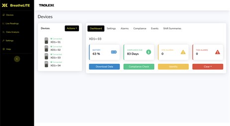 Get the official Trolex BreatheLITE app for XD One and XD1+ devices. Connect seamlessly to view real-time readings, download data and change device settings to keep you informed and up to date with changing particulate levels in a range of environments. Monitor device performance, battery levels, alerts and alarms through the simple to use interface. Download now and take control of your particulate data.