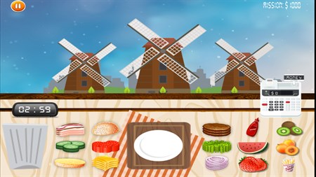 Burger On The Go --------------------- You own a fast-food truck and you have to cook delicious meals for your customers. Travel to new restaurants so you can have more customers and earn more money. Have fun cooking delicious meals in your restaurant kitchen for your customers . Sharpen your skill as you prepare, cook, assemble and serve delicious menu items in each exotic restaurant