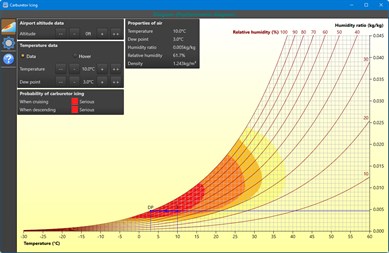 This app is meant for you as a pilot and adds different zones of carburetor icing probability to a diagram. ou enter the temperature from the meteo (METAR) and you get an indication of icing probabilities. Change the airport altitude and see how altitude affects the results.