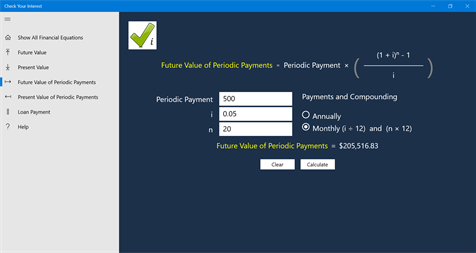 Check Your Interest provides five essential financial equations for your financial planning: