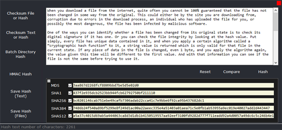 Checksum Hash MD5, SHA-1, SHA-256, SHA-384, SHA-512