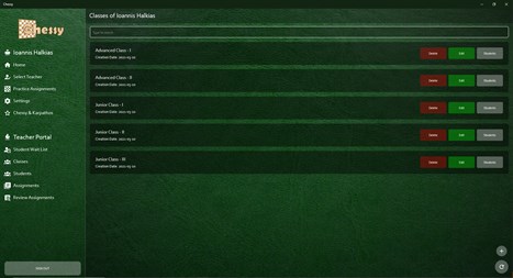 Chessy is a great app to assign chess exercises to your students by uploading pgn files. You can also find in iOS under the name Chessy!. Organize your students into classes, assign the exercises which will be autocorrected immediately, not letting your students establishing wrong patterns. The app is checking and pointing out the mistakes for you and you will get feedback on how your students performed and detailed review of their solutions and their scoring.